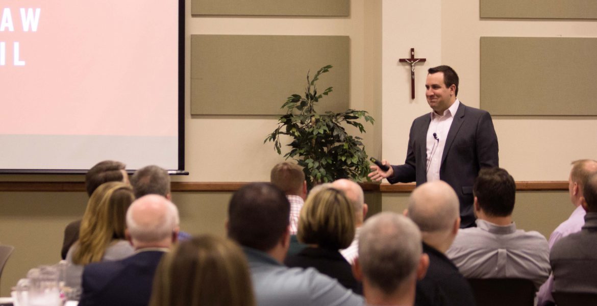 The Newman University School of Business launched its Distinguished Speaker Series on Tuesday, March 28 with a keynote presented by David Burkus.