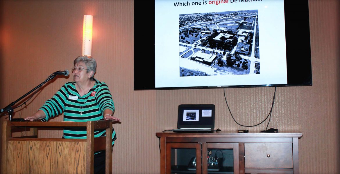 Rorhbach spoke about the original building and its history, going over dates and activities that took place in and around the building. Fun facts were included such as the bon fires that took place on the front lawn in conjunction with some sporting events. An audience member added that Lawrence Welk and his orchestra motorcaded in convertibles to see the academy one afternoon, driving slowly along McCormick Avenue [which at that time bisected the campus] so that many students were able to shake hands with Welk and his musicians.