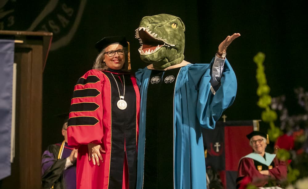 President Kathleen Jagger stands with Straub following his speech.