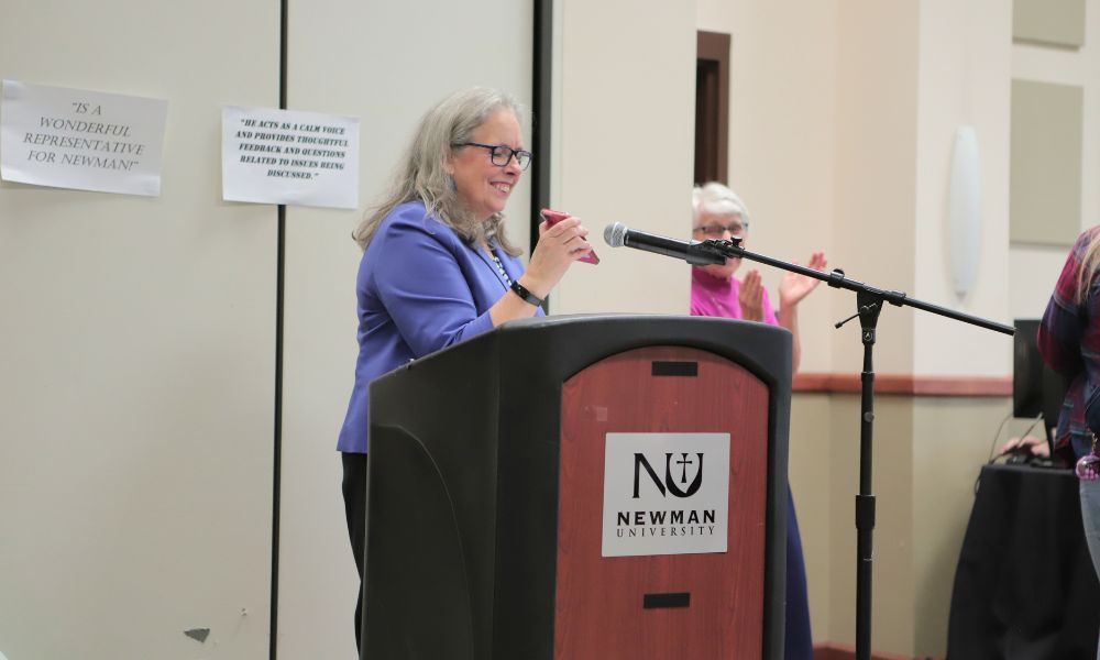 4 President Kathleen Jagger calls Lindsey Stillwell to announce the news of her Faculty Excellence Award.