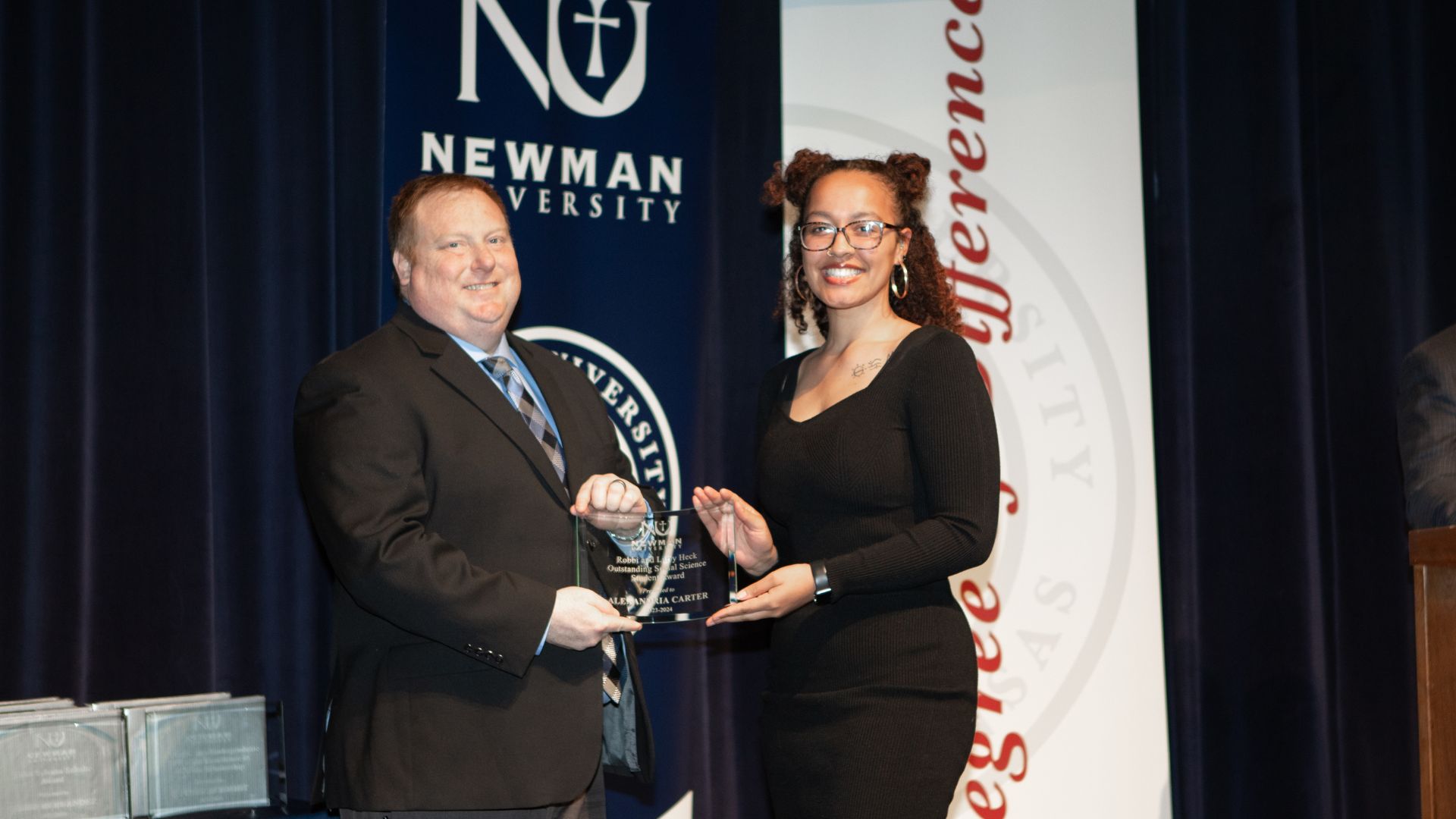 Alden Stout – Alexandria Carter Vice President of Academic Affairs Alden Stout presents student Alexandria Carter with the Robbi and Larry Heck Outstanding Social Science Student Award.