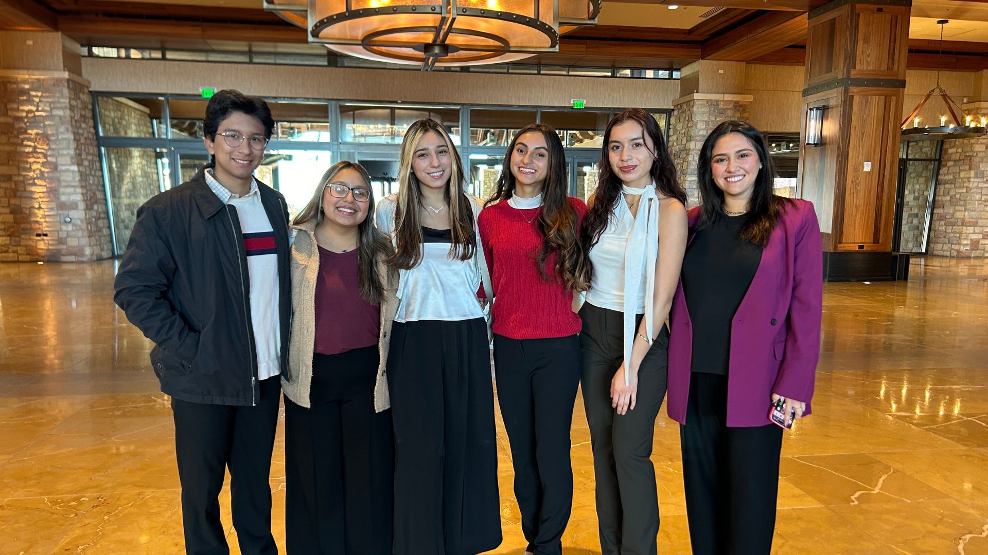 1 (From left to right) Students Piedra, Arguijo, Nunez, Torres, Rosales and Daniela Correa (executive assistant to the vice president of advancement).