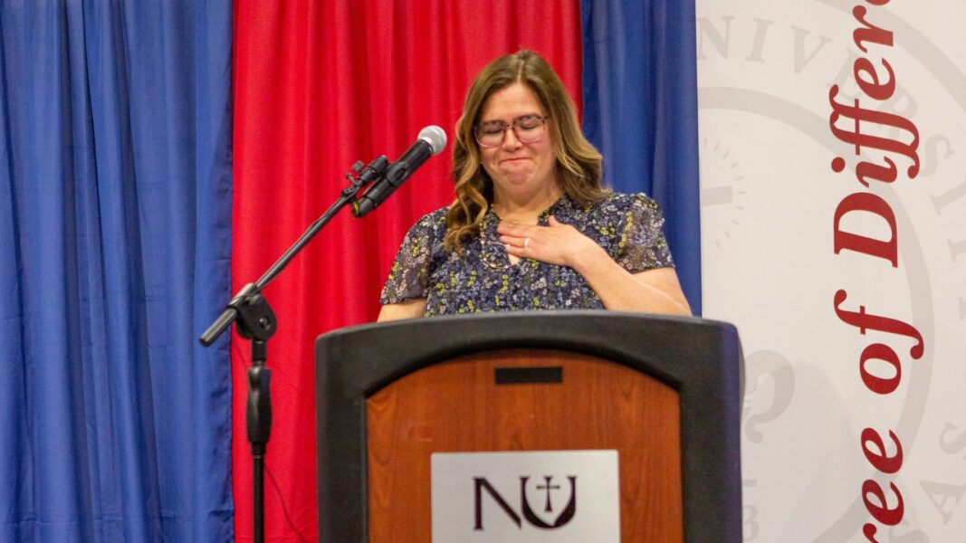 It was those very values that prompted her nomination and ultimate selection for the St. Maria De Mattias Award, one of Newman University’s highest alumni honors. The award recognizes graduates who exemplify loyalty to Newman and live out its mission in extraordinary ways. McWilliams accepted the award during the 2025 Legacy Banquet held on campus in April.