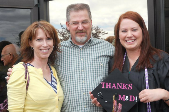Serina Hertel with her mother and father, Cindy and Joe, at her graduation from Newman