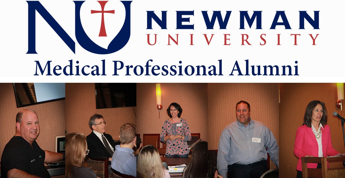 Six Newman University alumni who are now medical professionals joined forces on Monday, May 2 in the Tarcisia Roths, ASC Alumni Center to host a gathering for medical students on campus. The alumni – Brad Dart, orthopedics surgery; Bart Grelinger, neurology; Susan Giovanni, family medicine; Jerry Gaston, general surgery; Margaret Detmer, general dentistry; and Mitzi Bales, family medicine, spoke to students about what their everyday life entails and how to balance work and family.