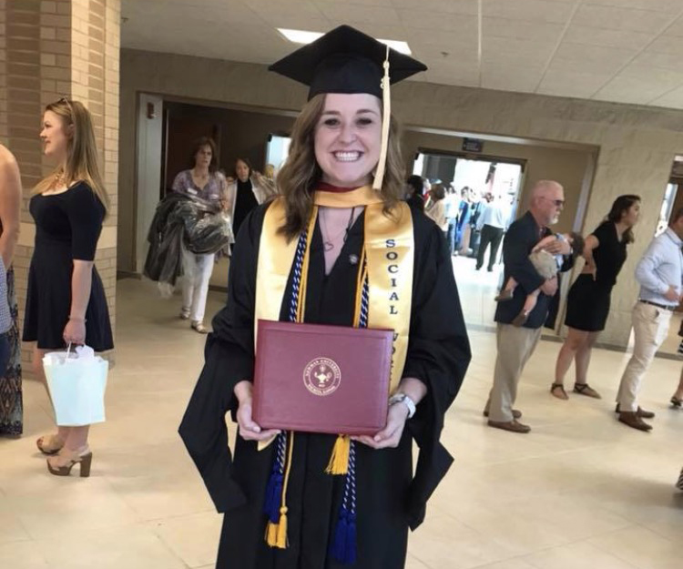 Ashley Schaal poses with her MSW diploma after the May 12, 2018 Commencement Ceremony.