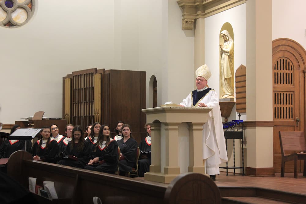 Bishop Kemme stands at the lecturn during his homily.