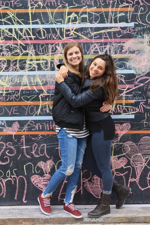 IMG_5413 Claire Setter and Xime Name pause for a photo near the Pop-up Urban Park in downtown Wichita.