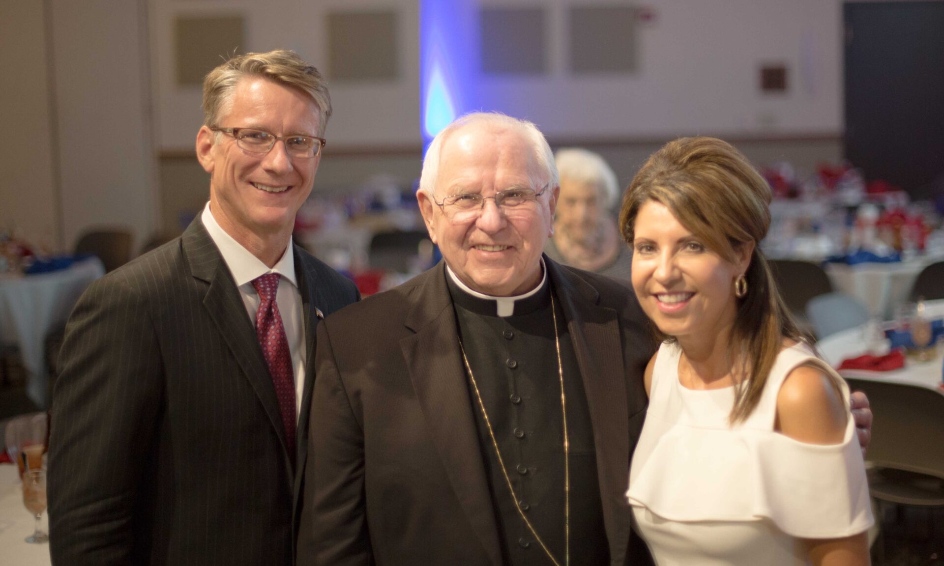 Gerber_Johnstons Bishop Gerber poses with Vice President for University President J.V. Johnston and his wife Veronica.