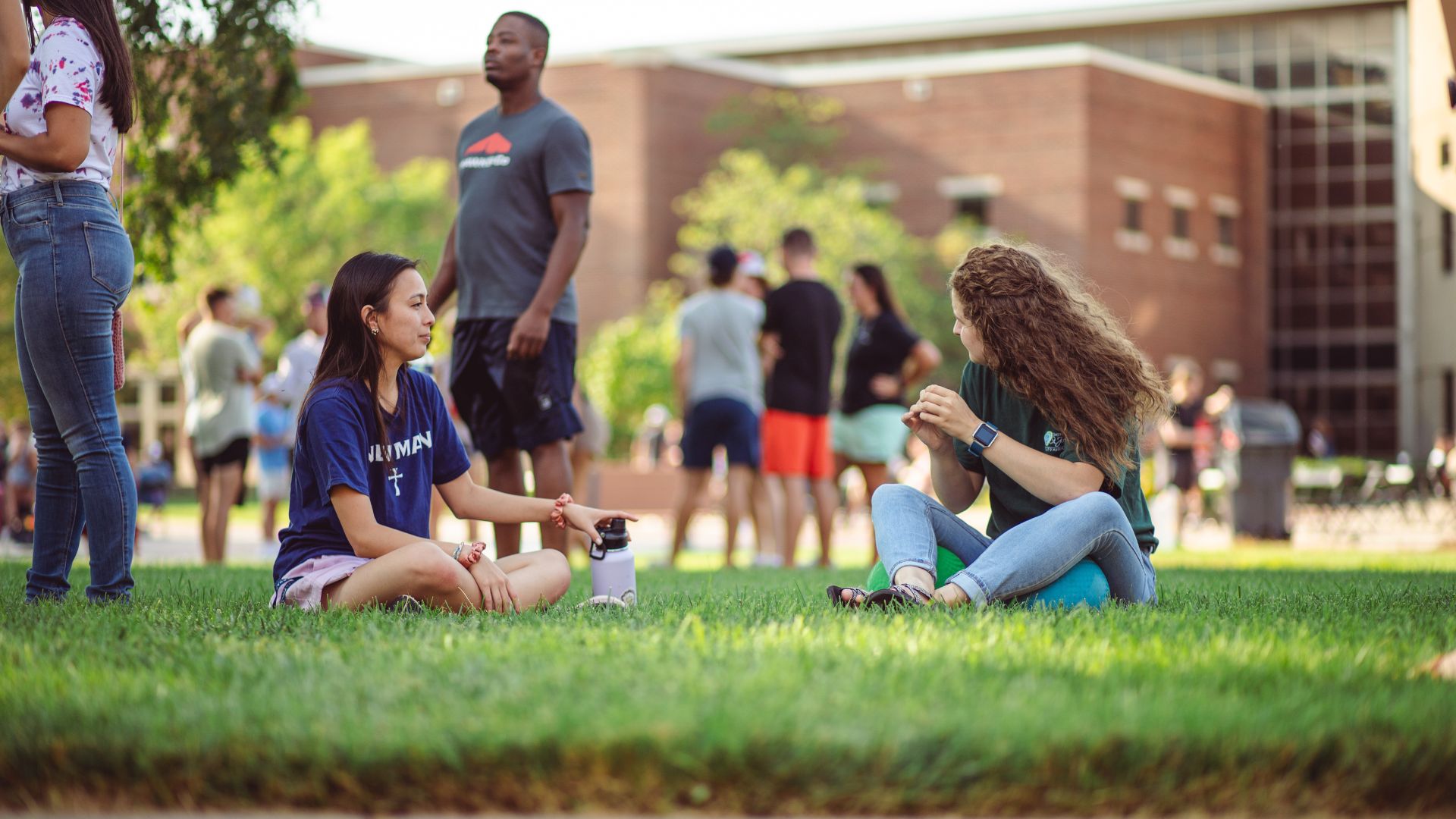 xr:d:DAF-rjpR9ro:2,j:7036169279047139101,t:24030522 Students relax on the grass during a back to school event at Newman University.