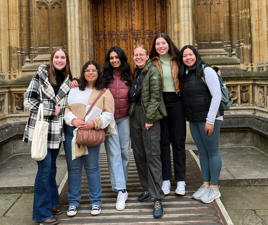 Sydney-Le Newman University students Hayley Stewart (far left), Rosaline Martinez (second from left), Katie Stewart (second from the right) and Sydney Le (far right) study abroad for a semester at Newman University's sister school in Birmingham.