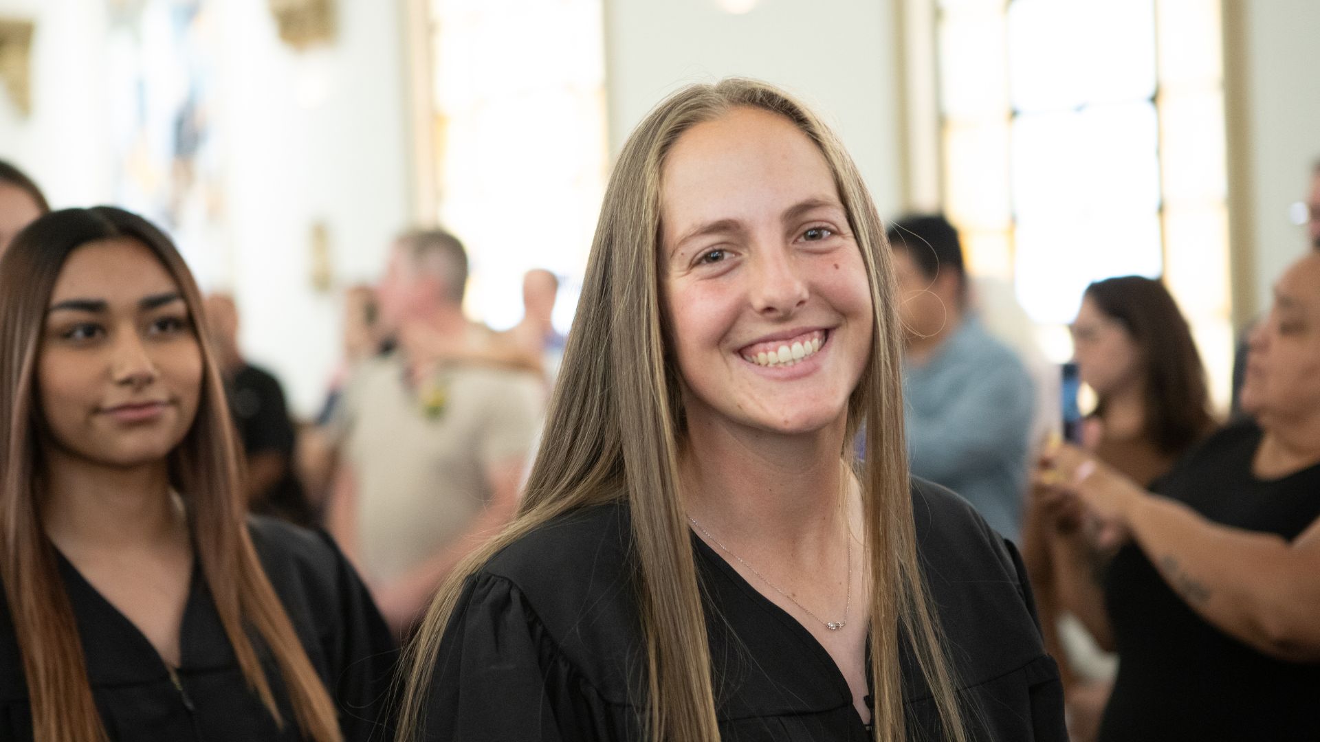 Bonython smiles during the Baccalaureate Mass for graduates.
