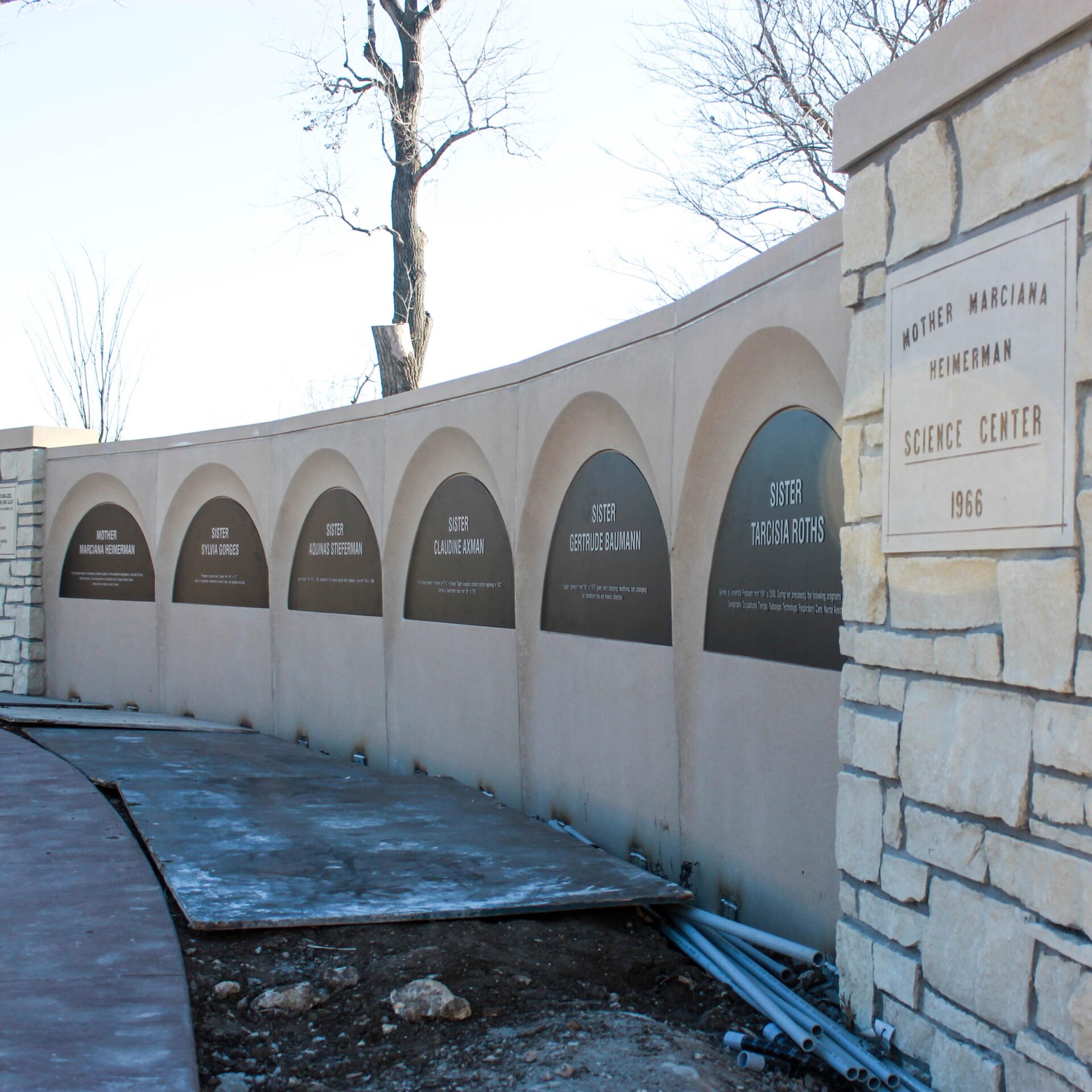The honor wall stands at the south end of the new Heimerman Plaza space.