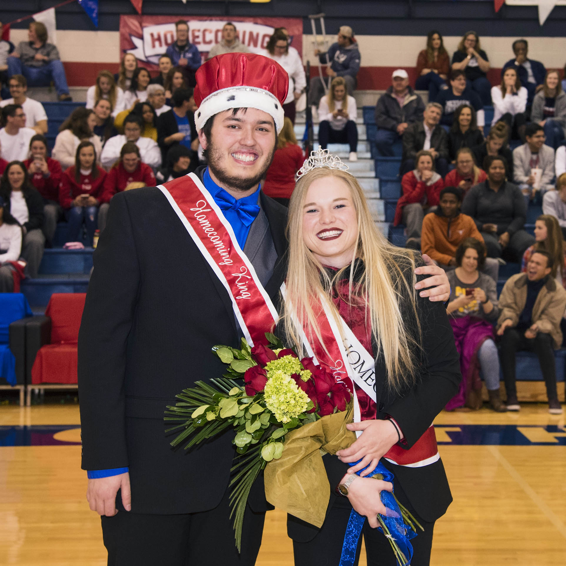 KingQueen Jacob Hobbie, homecoming king, and Delaney Hiegert, homecoming queen, pose for a photo after the big announcement.