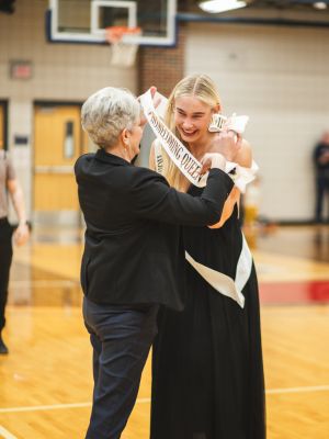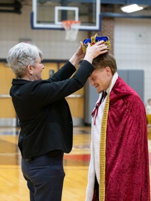 After the court was introduced, Dean of Students Andi Giesen crowned Colby Schreiner as the 2026 Homecoming King and Lioukina as queen.