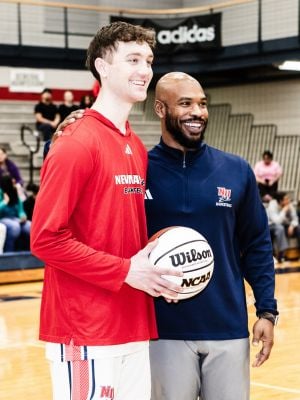 During halftime of the men’s game, Newman Student Life officials presented the 2026 Homecoming Court and revealed the king and queen.
