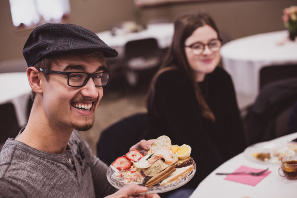 Brandon Steiner ’19 holds a plate of treats at a past High Tea event.