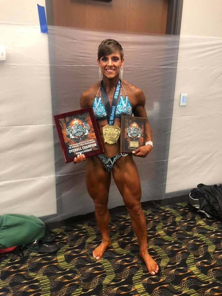 Sgt. Katasha Bledsoe shows off her first place medal at a bodybuilder competition.