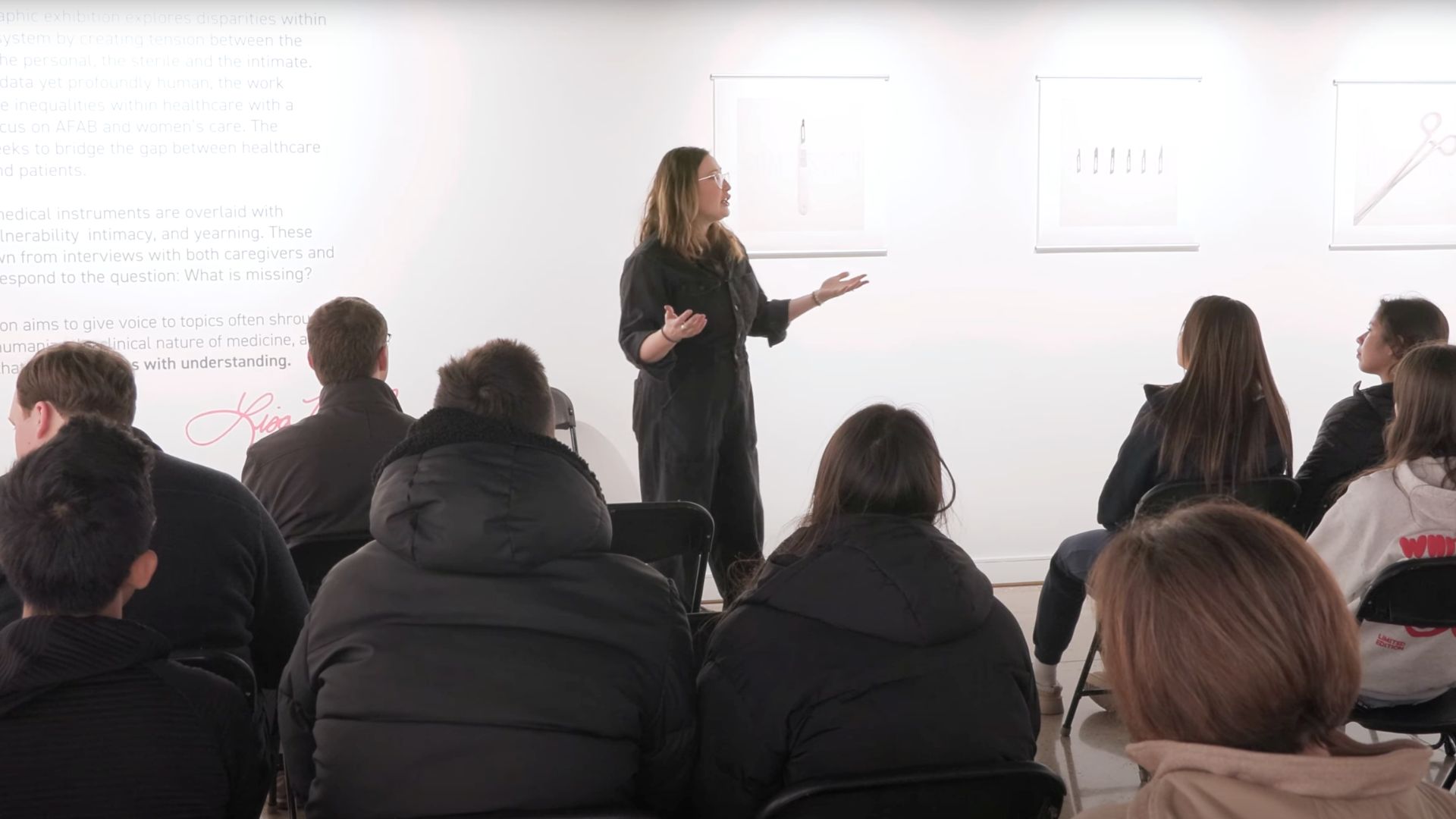 Zirbel presents in the Steckline Gallery as students, staff and faculty fill the seats