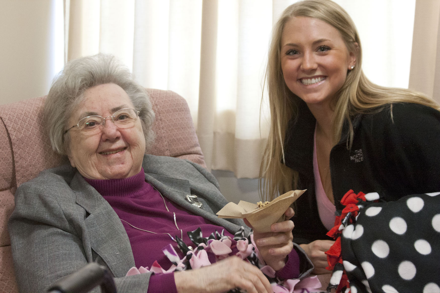 Sister Loretta Gegen, ASC, smiles with a young friend for a photograph.