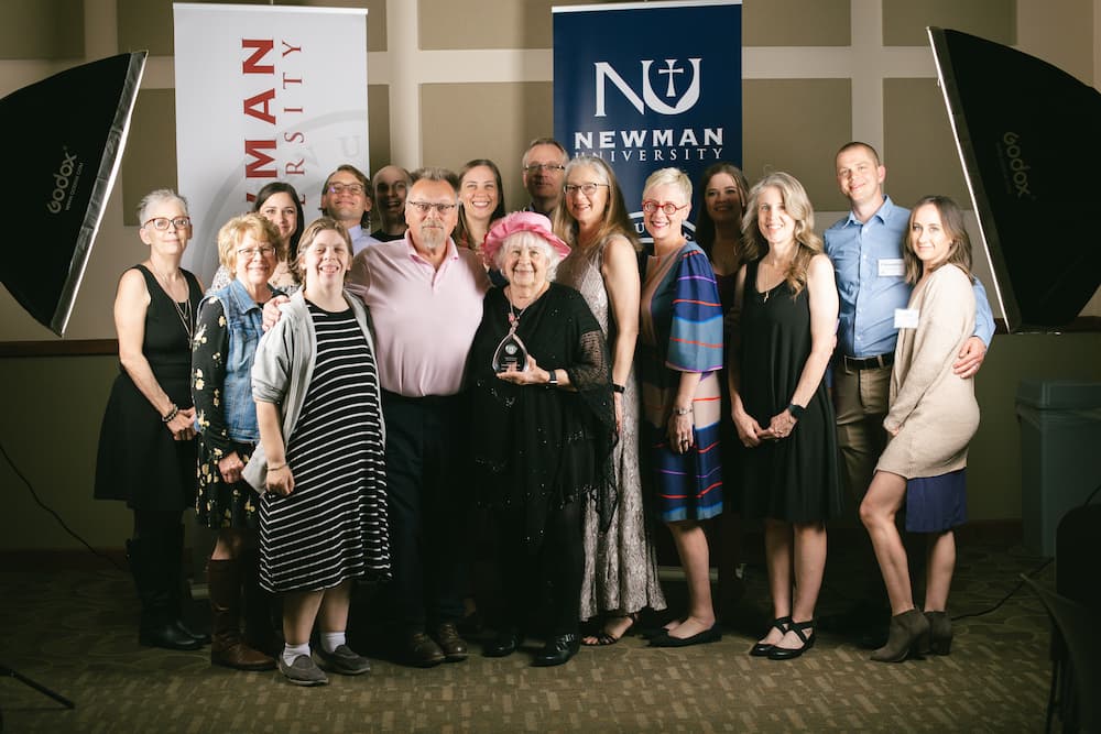 Alumni Awards – BBB – St Newman Award-80 (1) Kelley accepted her Newman alumni award surrounded by all six of her children and family.