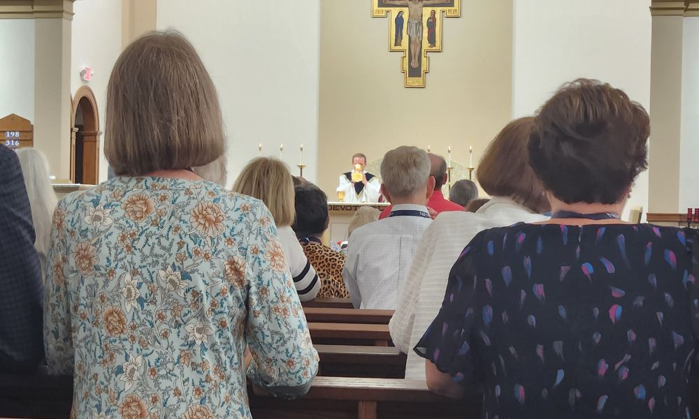 Alumni gather for Mass in St. John's Chapel during the 2023 All-Alumni Reunion.