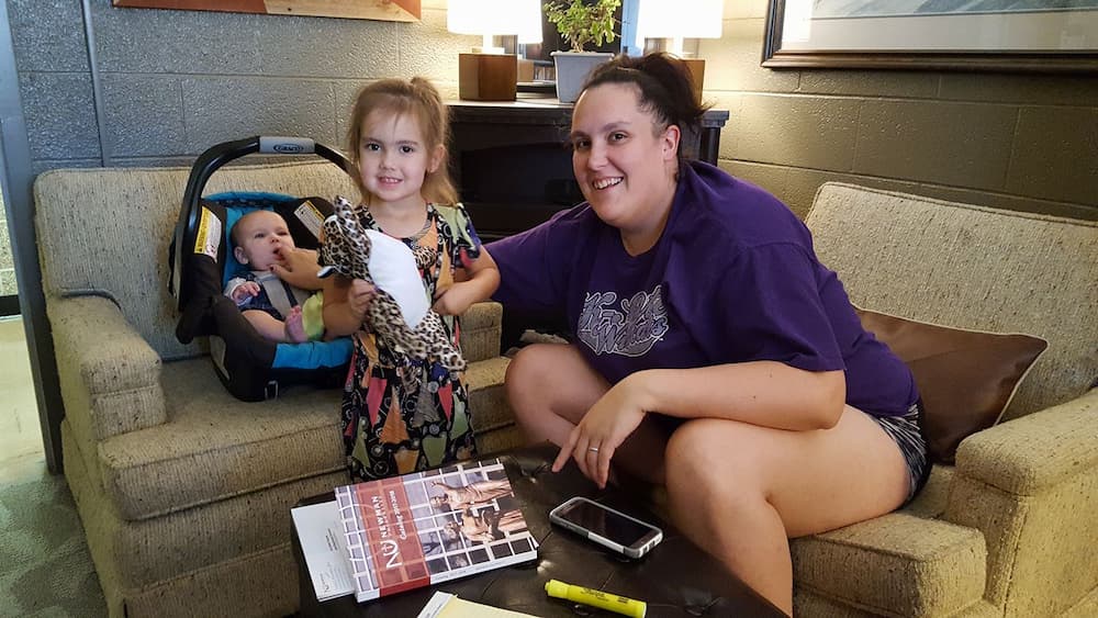 Kate Langworthy, with two young children in tow, went to Newman professor Teresa Wilkerson’s office, ready to finish her degree and head to law school.