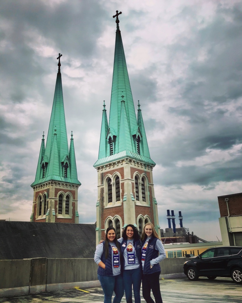 UNADJUSTEDNONRAW_thumb_9ad Macey Neal, Paola Nunez and Emma Lacy stand in front of Saint John the Evangelist.
