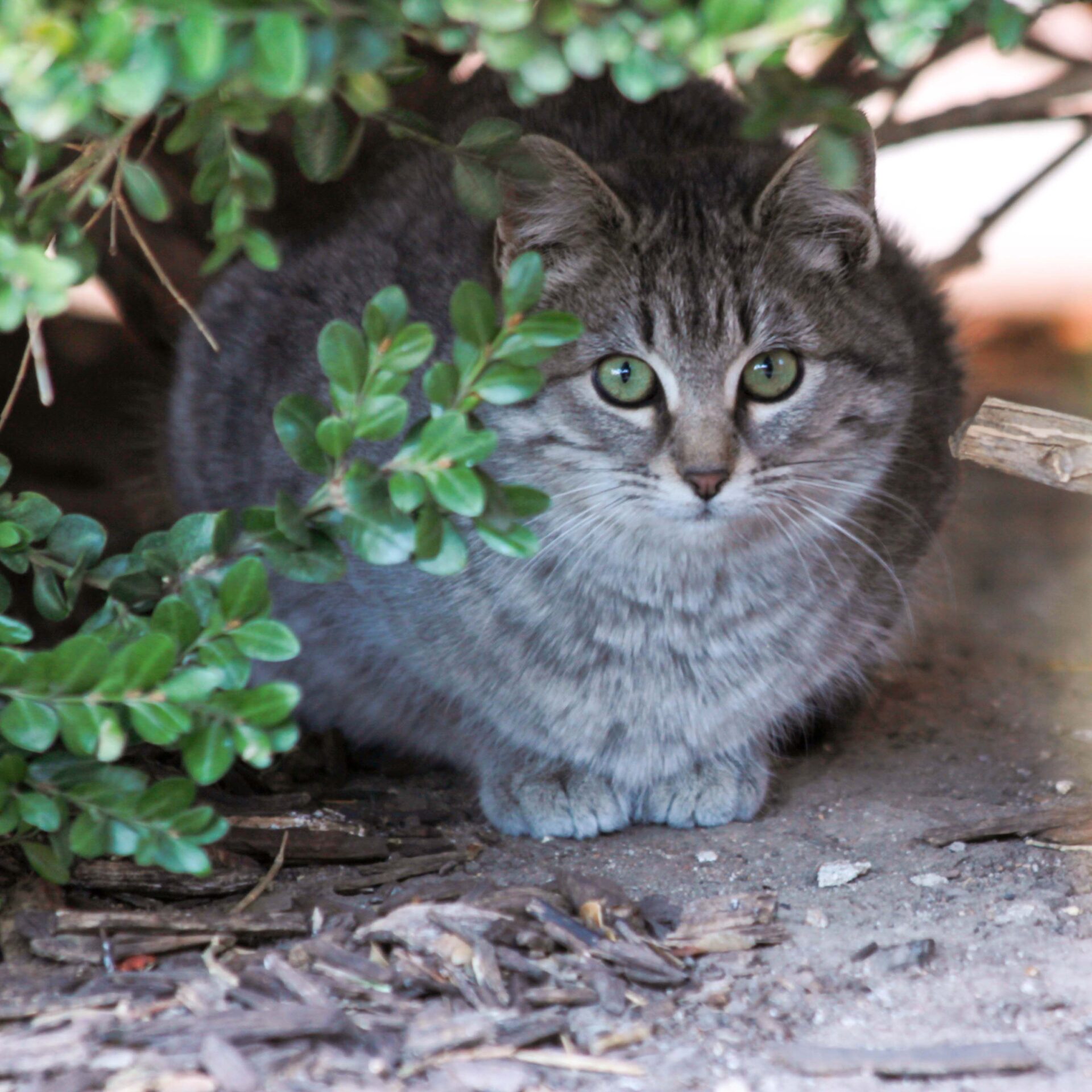 A campus cat takes shelter near the Mabee Dining Center.