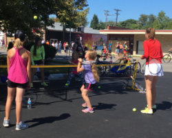 Two Newman University tennis players enjoying the day out at Open Streets ICT