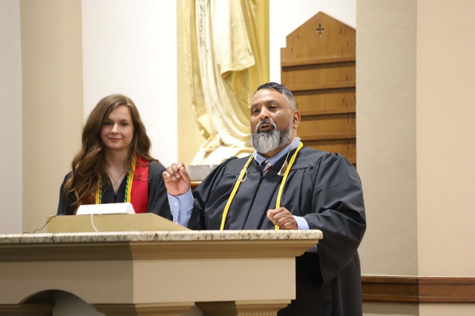 part0-1 Marcus Anthony Gonzalez gives a reflection following the Baccalaureate Mass in St. John's Chapel.