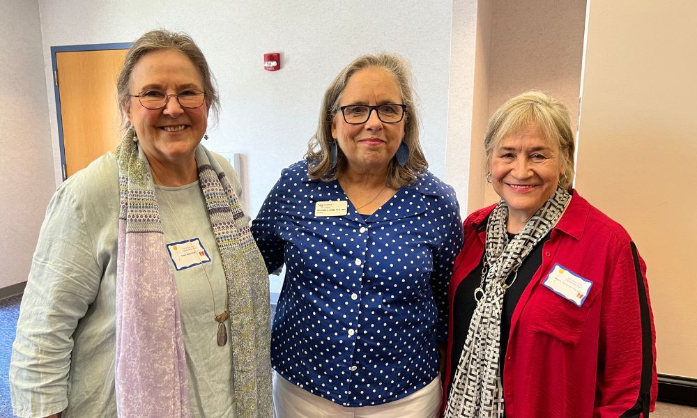 (From left to right) Sacred Heart Academy graduate Susan Cohn ’64, President Kathleen Jagger and SHA graduate Karen Flanigan ’64 celebrate the 76th birthdays of their fellow classmates.