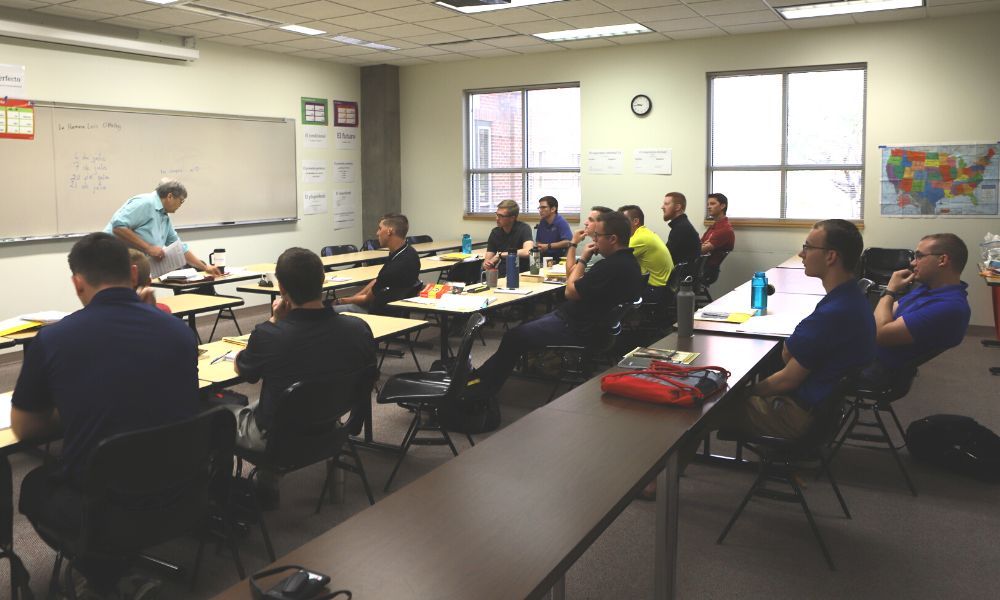 Sister Lois O’Malley teaches Catholic Social Teaching to the seminarians. Sister Lois O’Malley teaches Catholic Social Teaching to the seminarians.