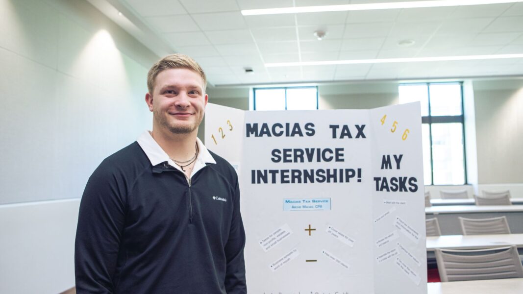 He created a poster presentation titled “Tax firm internship” for his senior Scholars Day.
