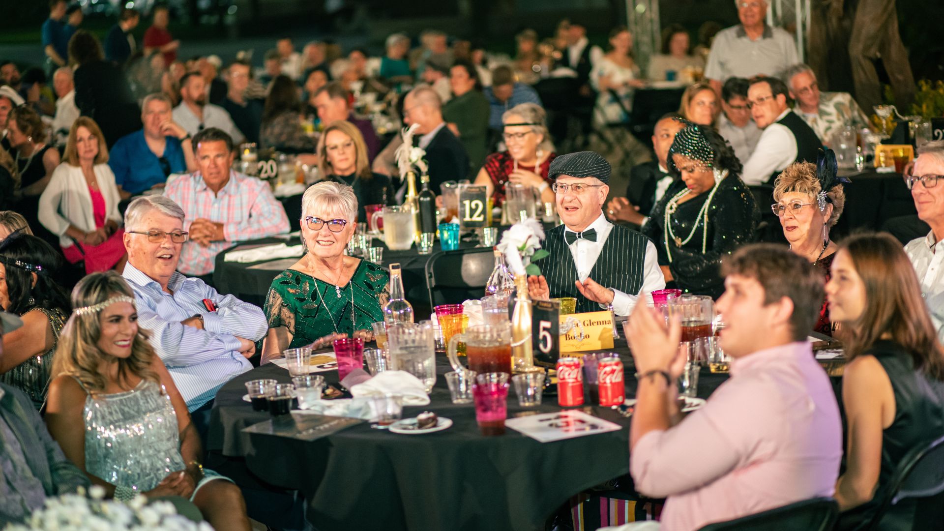3 Tables full of supporters fill Founders Plaza at Newman University for the annual Party on the Plaza fundraiser.