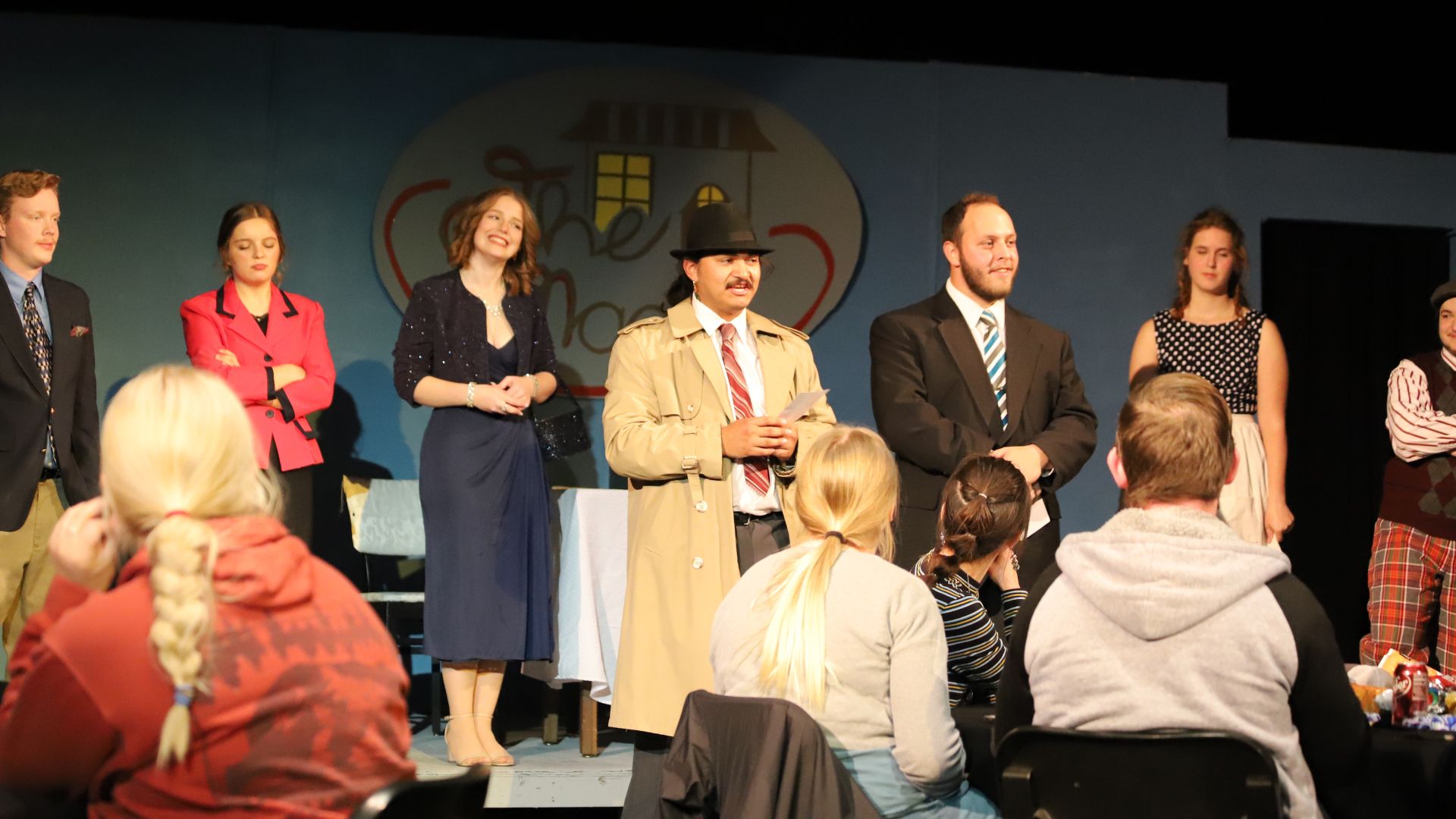 3 (From left to right) "Murder on the Menu" actors Steven Brown, Emily Pachta, McGrath, Cubias, Jones and Abi Oberley.