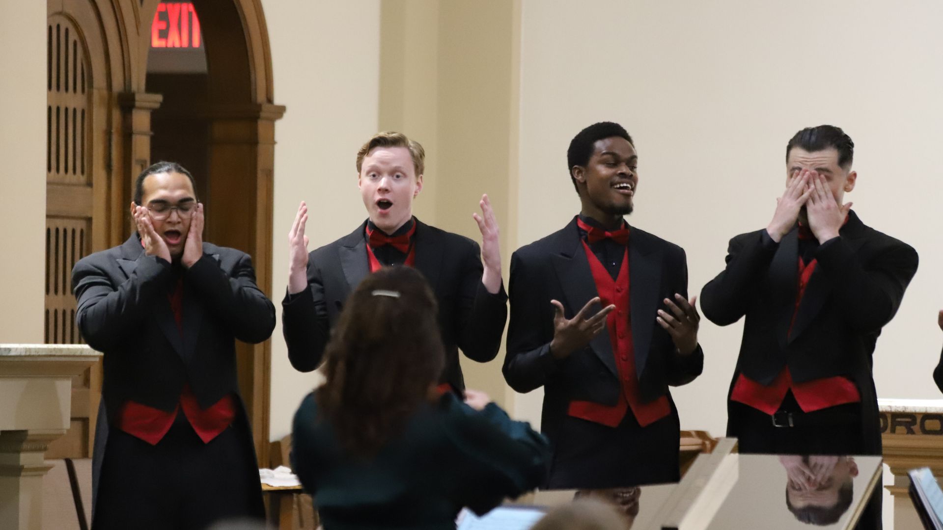 1 (Second from the right) Lotsu-Morgan performed in the fall concert with the Newman University chorale and troubadours.