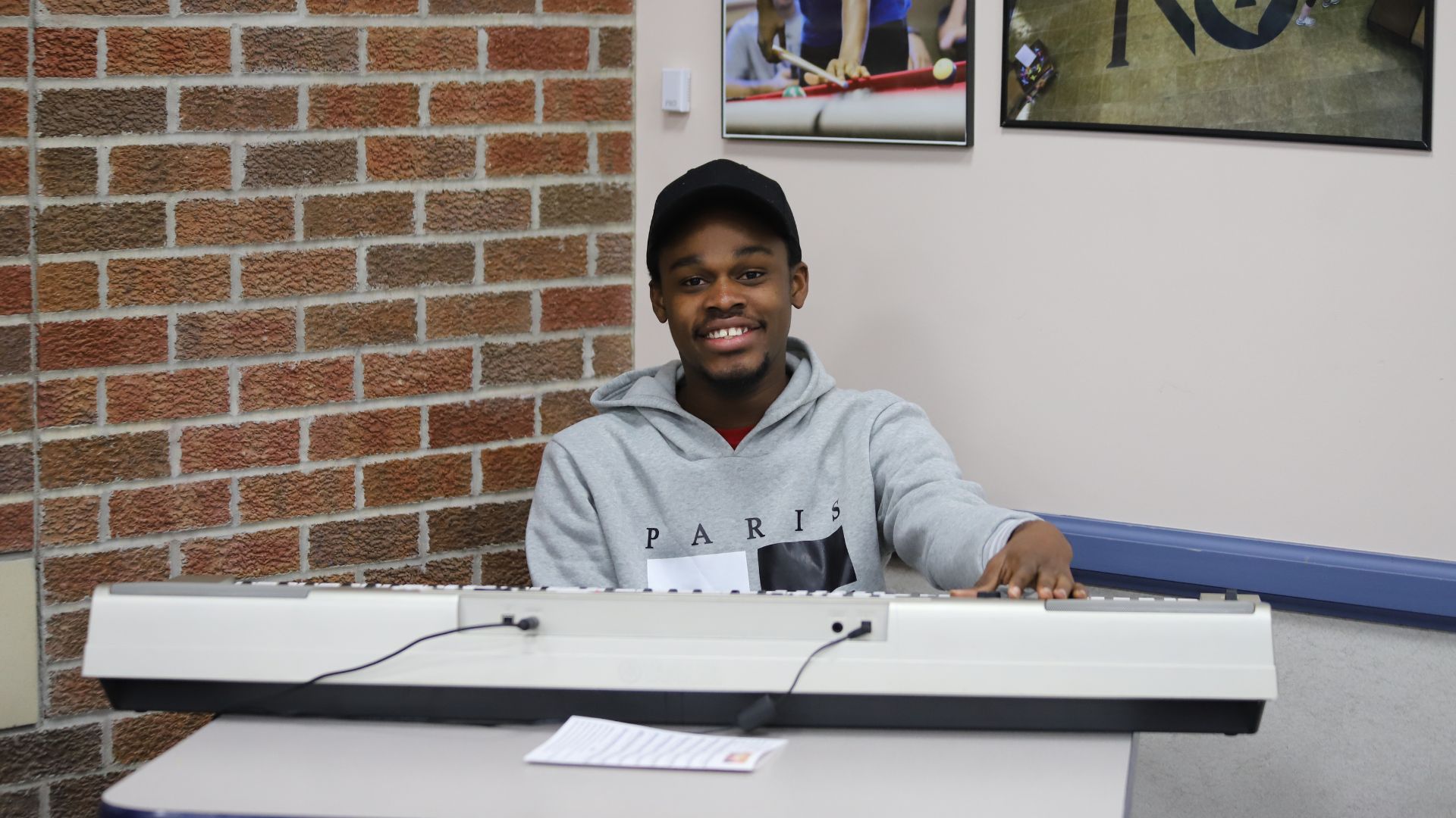 3 Lotsu-Morgan smiles from behind a piano keyboard during the 2024 Prayer Breakfast at Newman University.