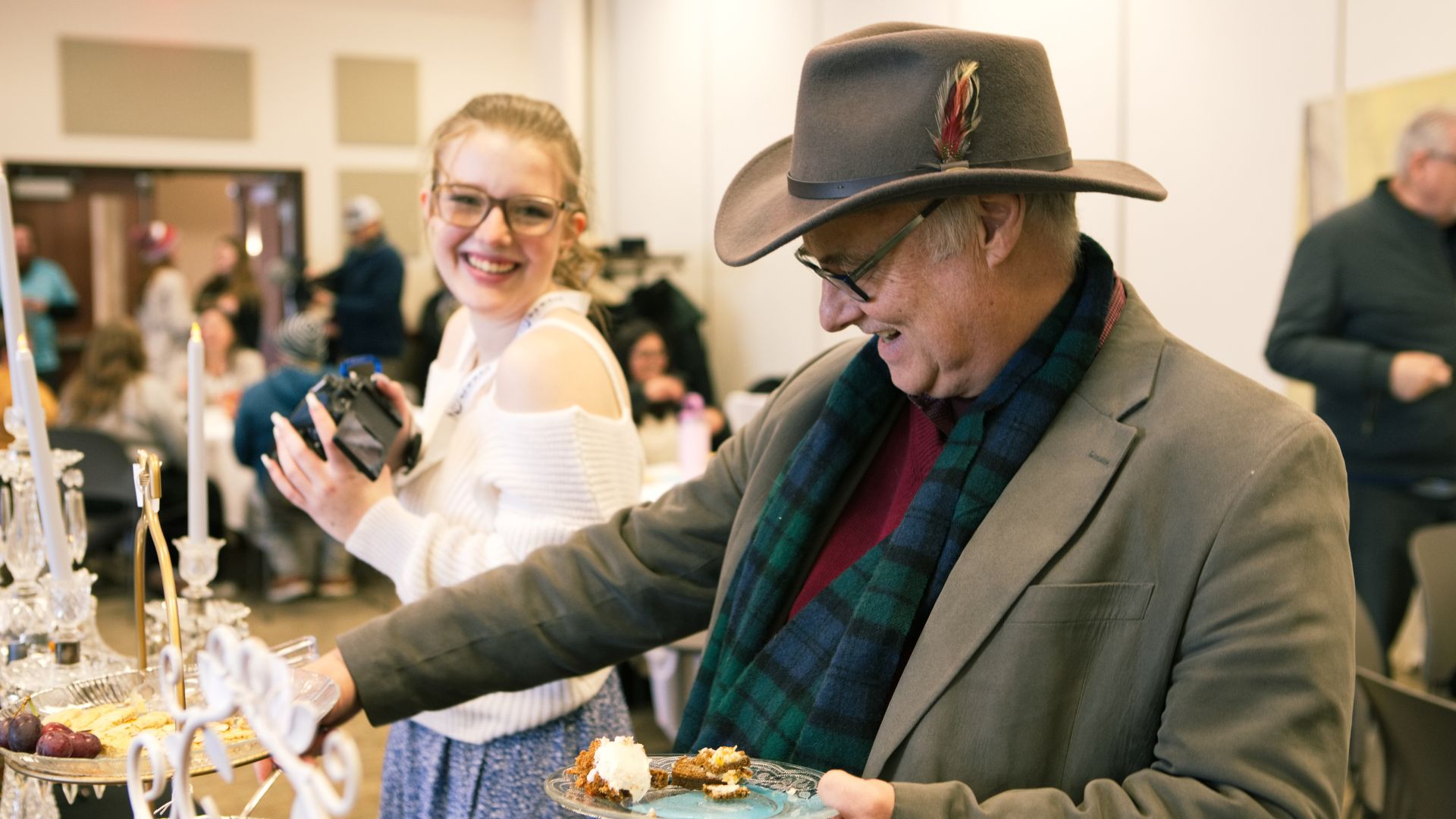 Associate professor and director of theater Mark Mannette enjoys High Tea at Newman.