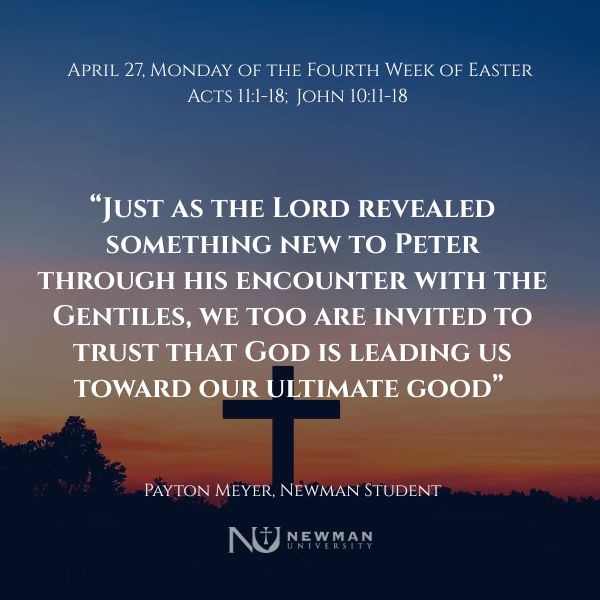 In this Easter season, we are reminded that Christ is the sacrificial Lamb who has a profound love for each of us personally. Christ, the Good Shepherd, tells us that His sheep hear His voice, that He knows them, and that they follow Him. This relationship is deeply personal and rooted in trust. The invitation to communion with Christ stretches beyond what is familiar and comfortable, calling us to ongoing conversion. Just as the Lord revealed something new to Peter through his encounter with the Gentiles, we too are invited to trust that God is leading us toward our ultimate good.